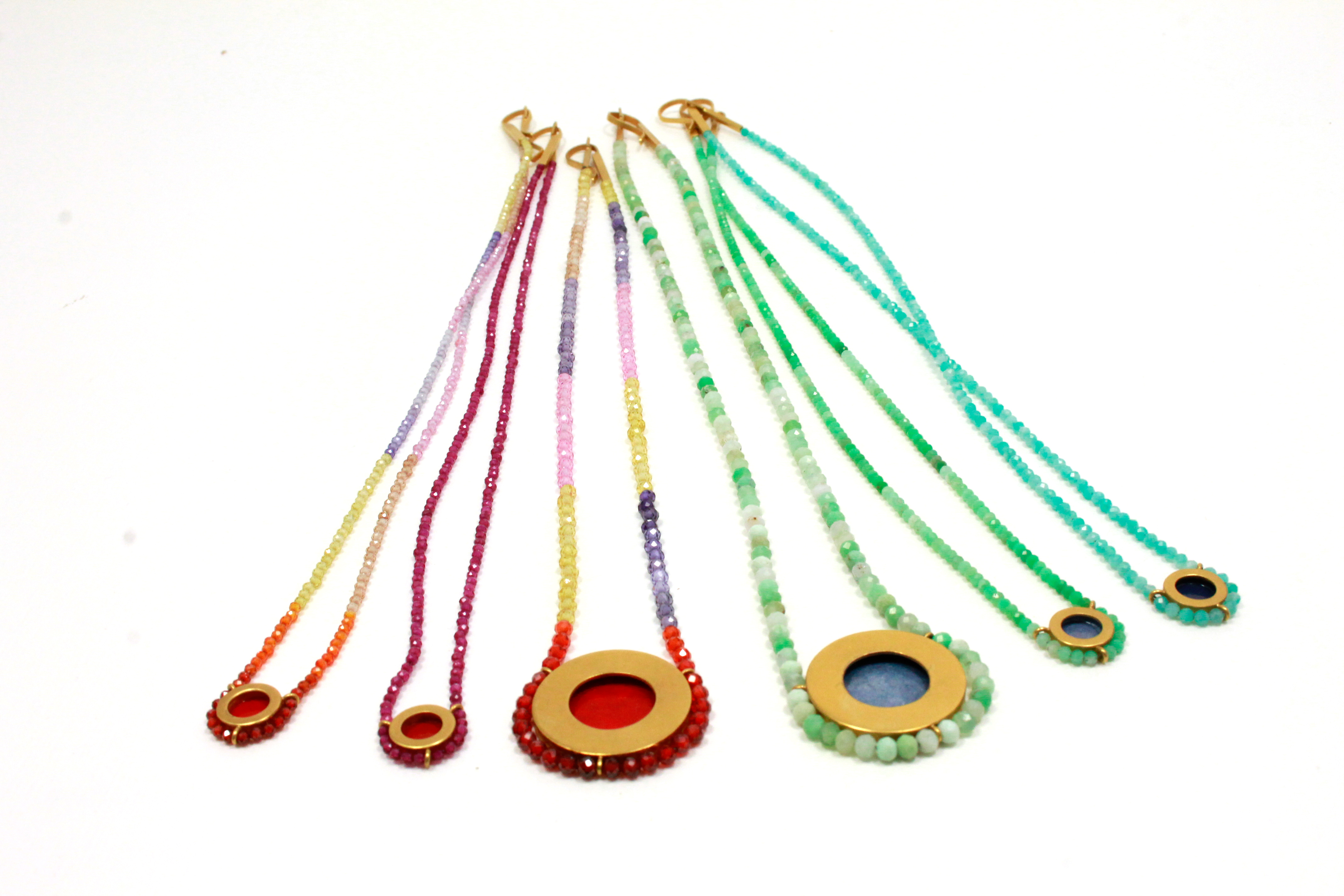 5. Colliers Sun / Silber Feingold plattiert / bunten Steinstränge/ vorne